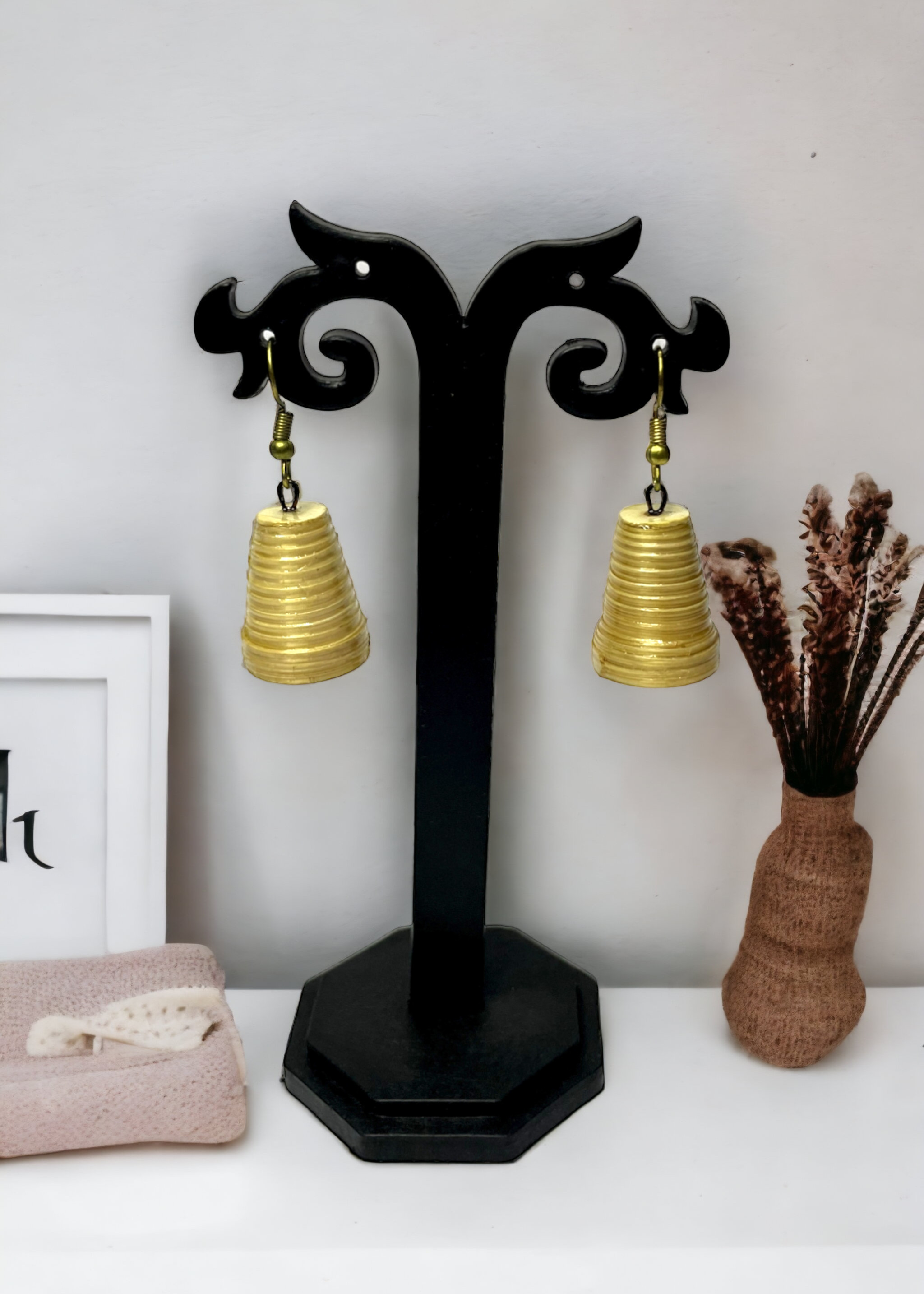 This stunning pair of earrings is a true work of art, handcrafted from high-quality bamboo in the beautiful city of Agartala, Tripura. Bamboo is a revered material in the region, known for its strength, durability, and versatility, making it the perfect choice for this unique and eye-catching piece of jewellery.