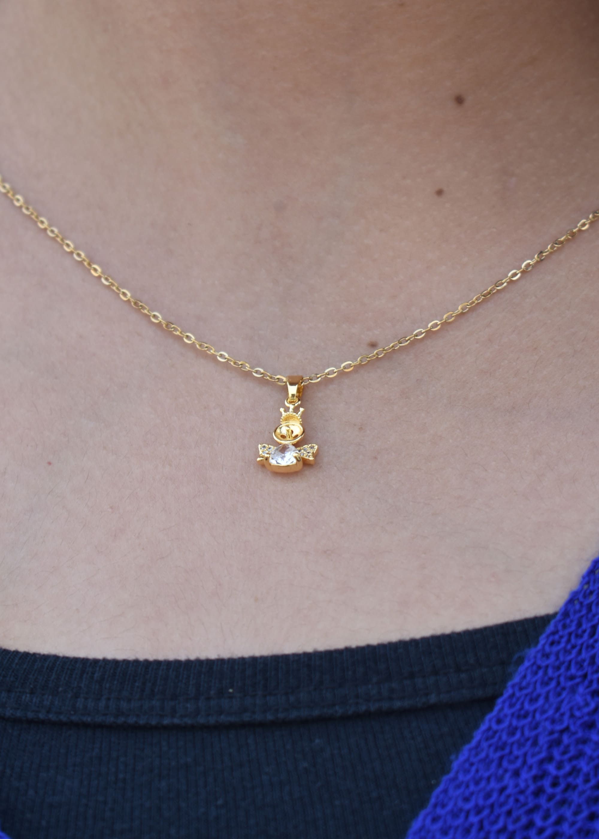 Introducing our Bird Elegance Necklace – a stunning piece that’s as unique as it is beautiful. Imagine a graceful bird pendant, shining in gold and adorned with a crystal-clear gemstone. But here’s the twist: this bird wears a crown, adding an intriguing touch to its elegance.