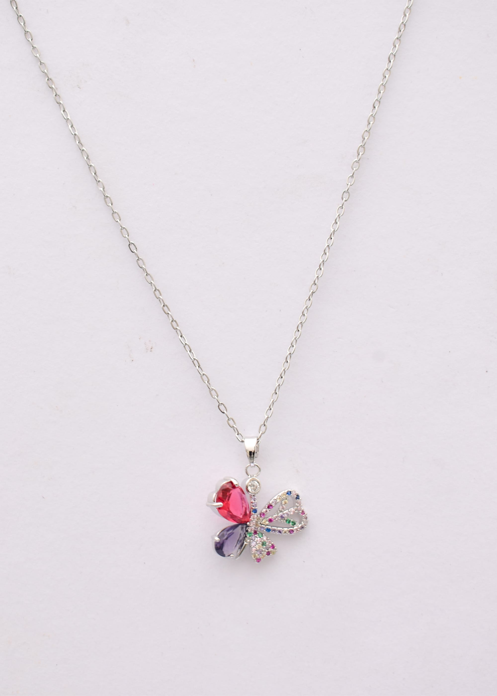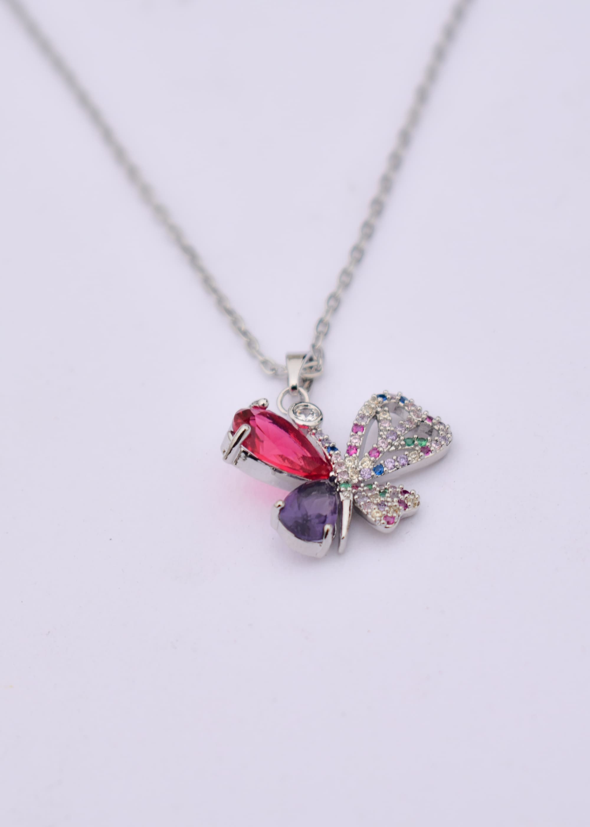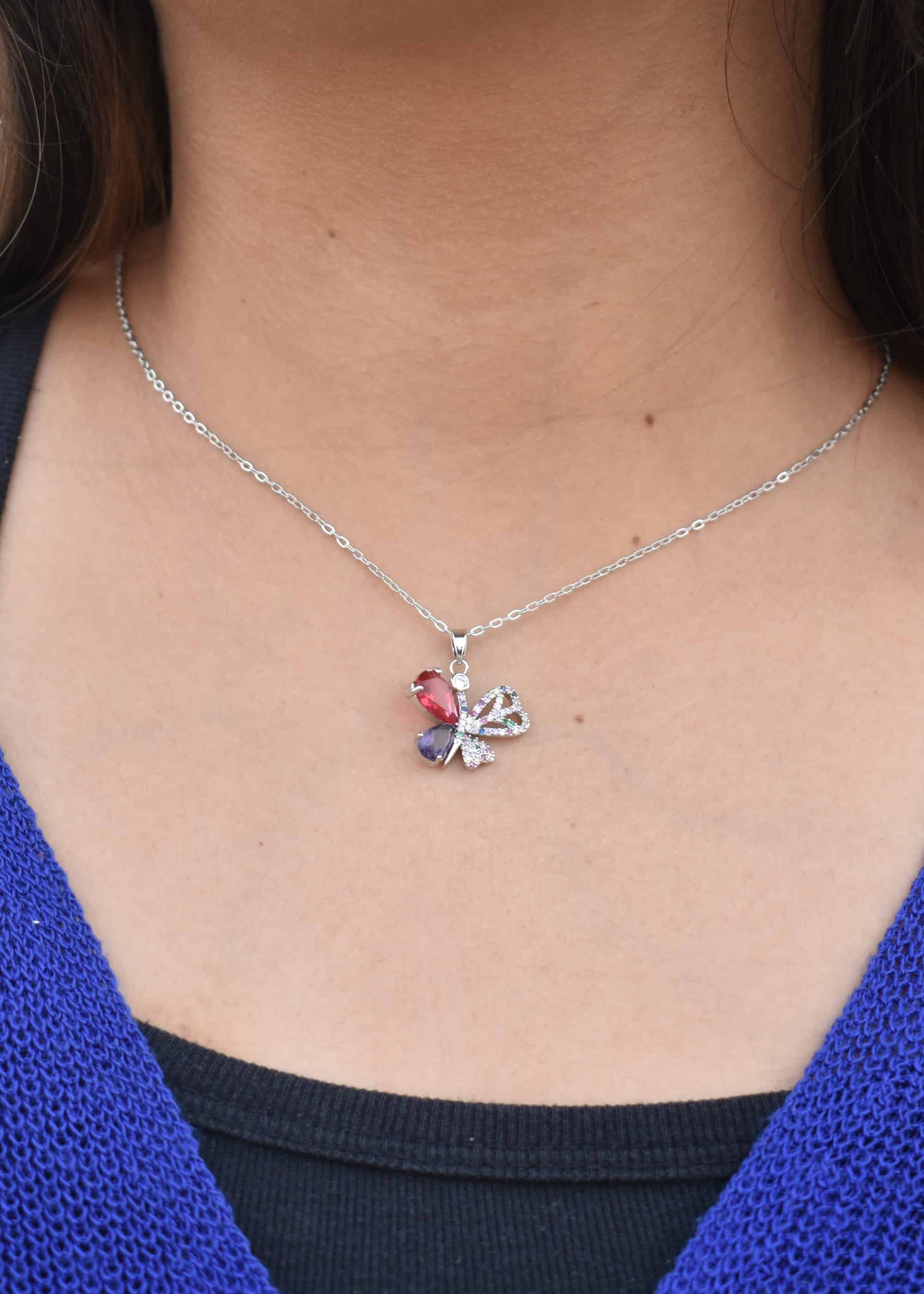 Picture this: a delicate butterfly pendant, shining with a rainbow of colorful gemstones. It’s the kind of necklace that turns heads and starts conversations. And let’s not forget about the chain – it’s top-notch quality, so you can wear it comfortably and confidently all day long.