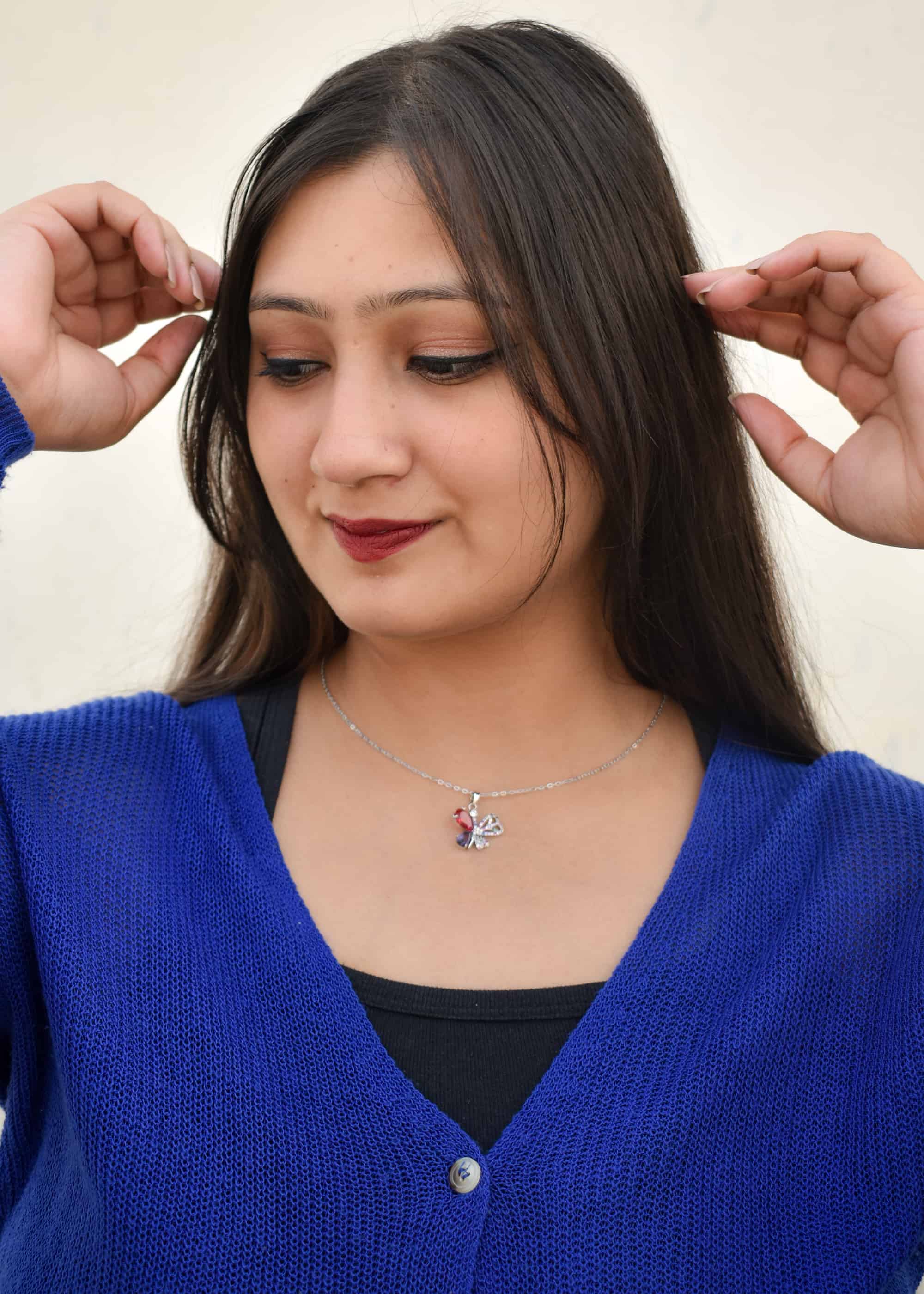 Introducing our “Butterfly Gemstone Necklace” – a stunning piece that’s as beautiful as it is meaningful. Straight from the fashion hotspot of Delhi, India, this necklace is like a little piece of art you can wear around your neck.