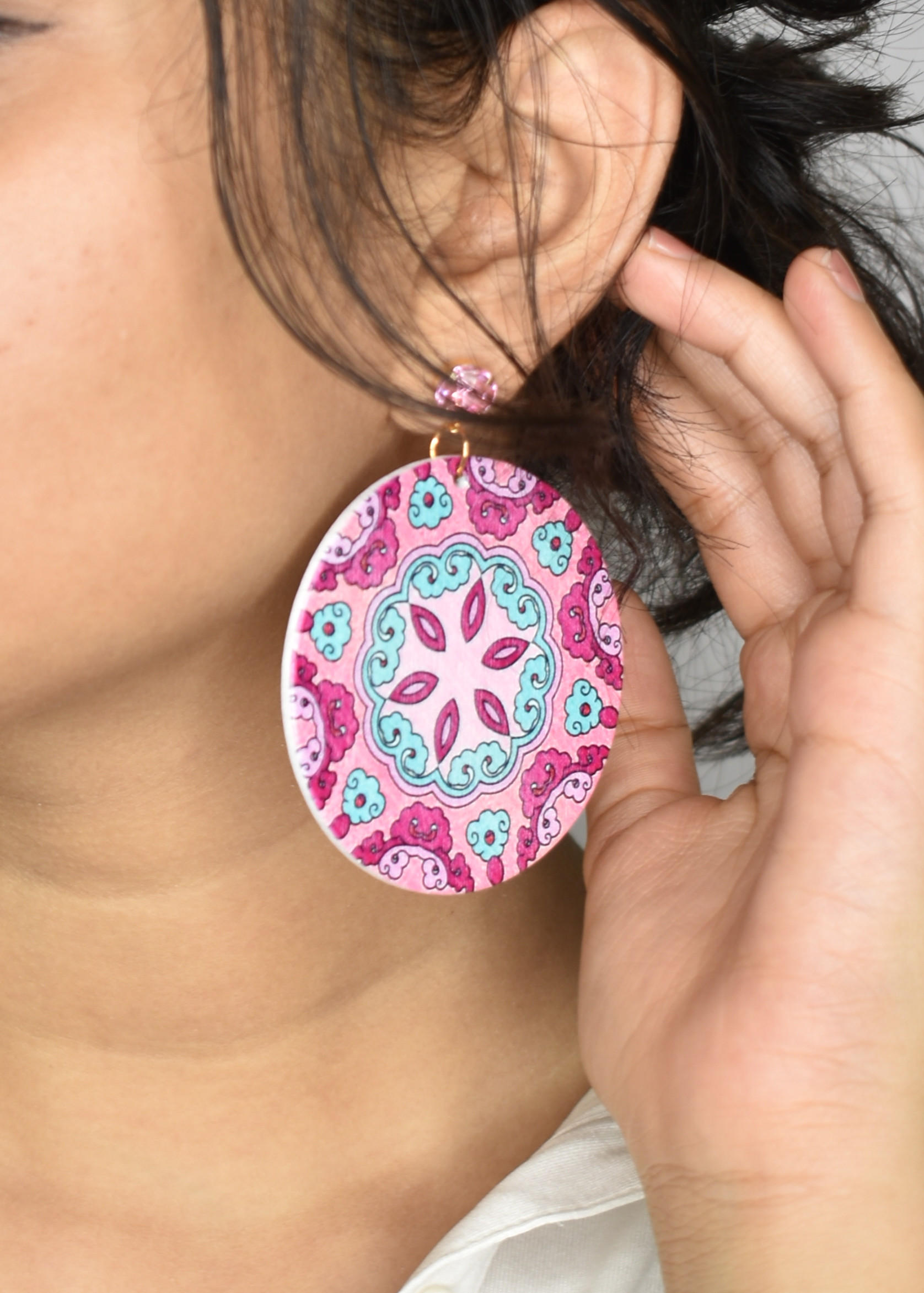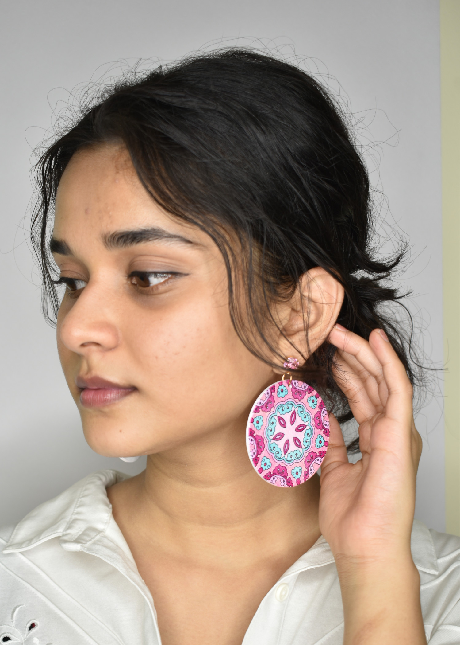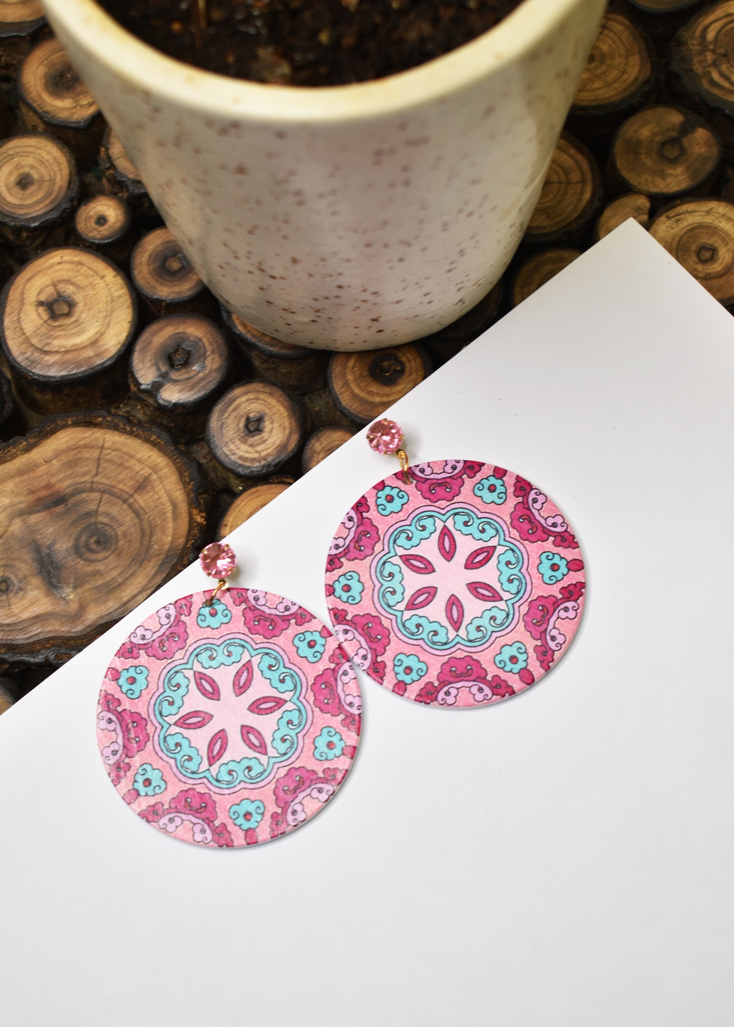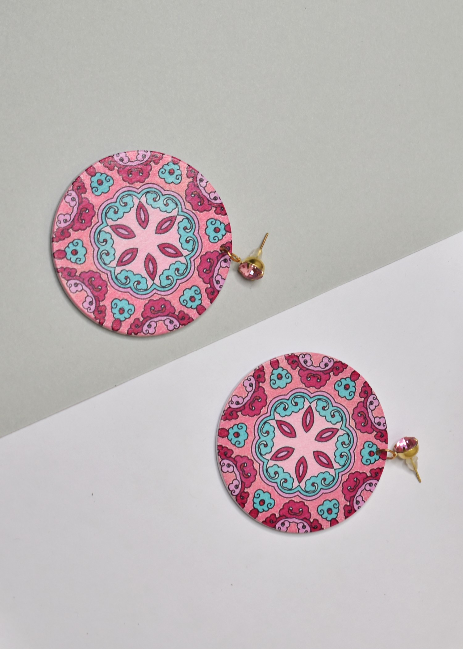 • Exquisite Circular Floral Pattern Printed Earrings from Delhi