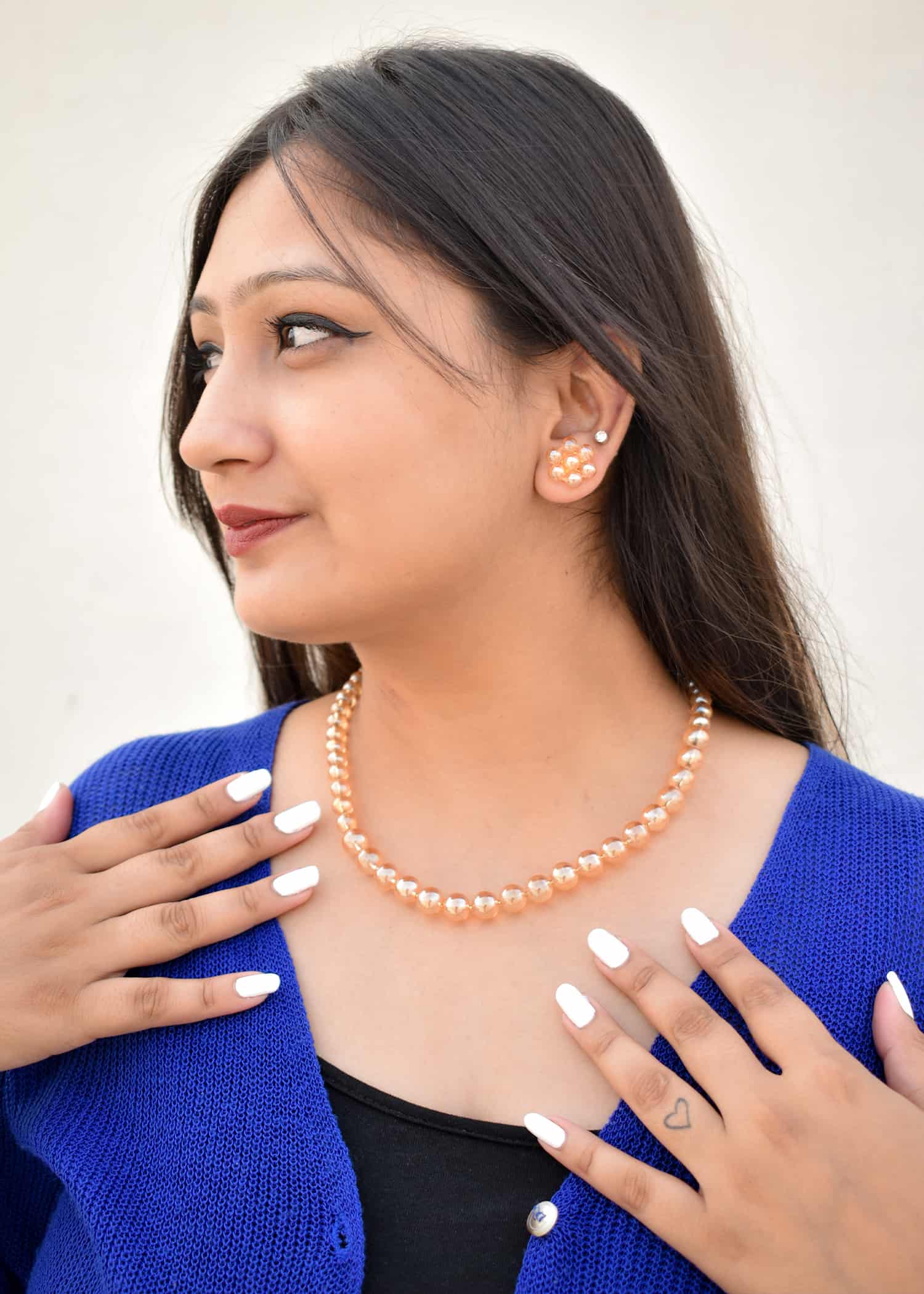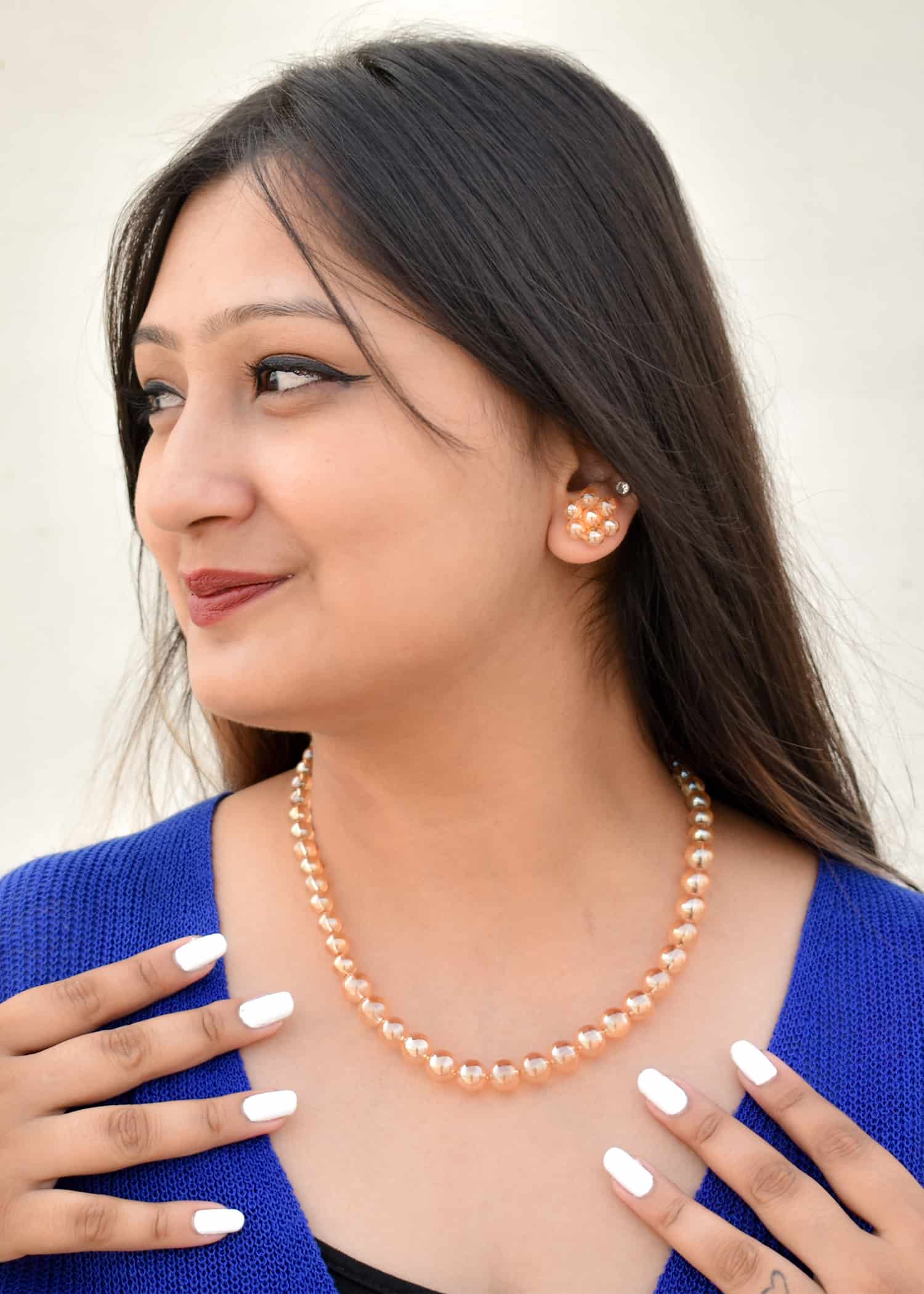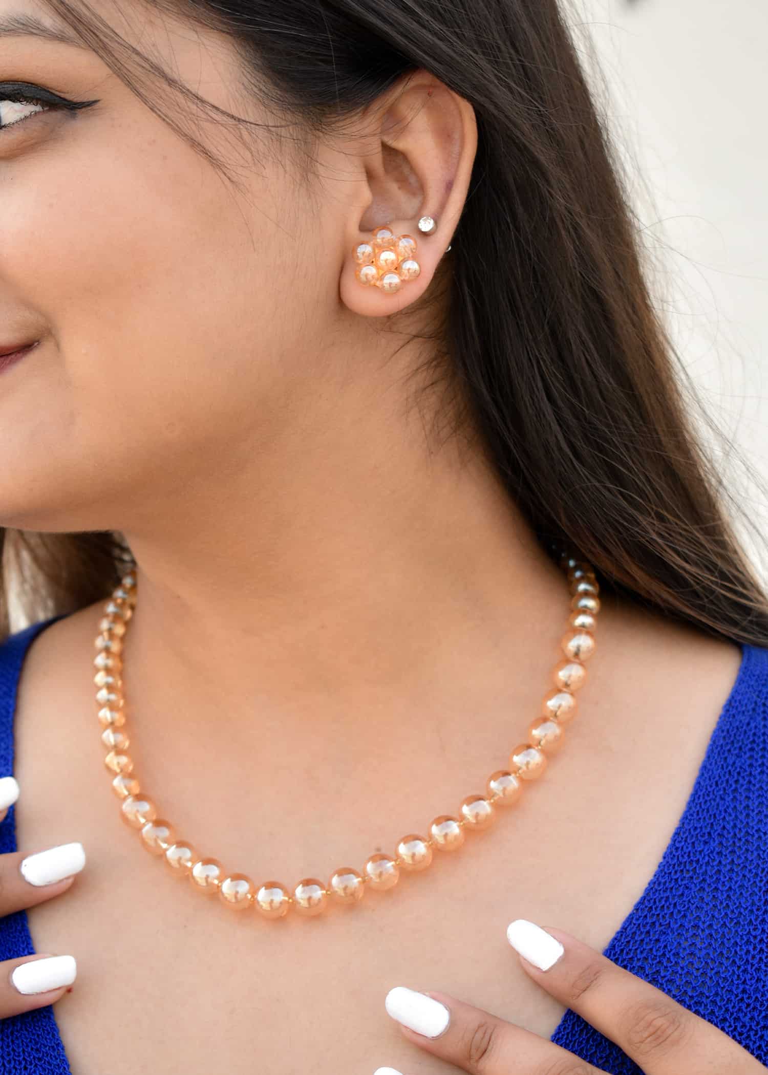 Imagine elevating your style with these timeless coral-colored pearls. The Soumiez Necklace and Earrings Set is like a shining example of your good taste and love for elegant things. This jewellery comes from the heart of Delhi, a city in India known for its modern fashion and cutting-edge designs.