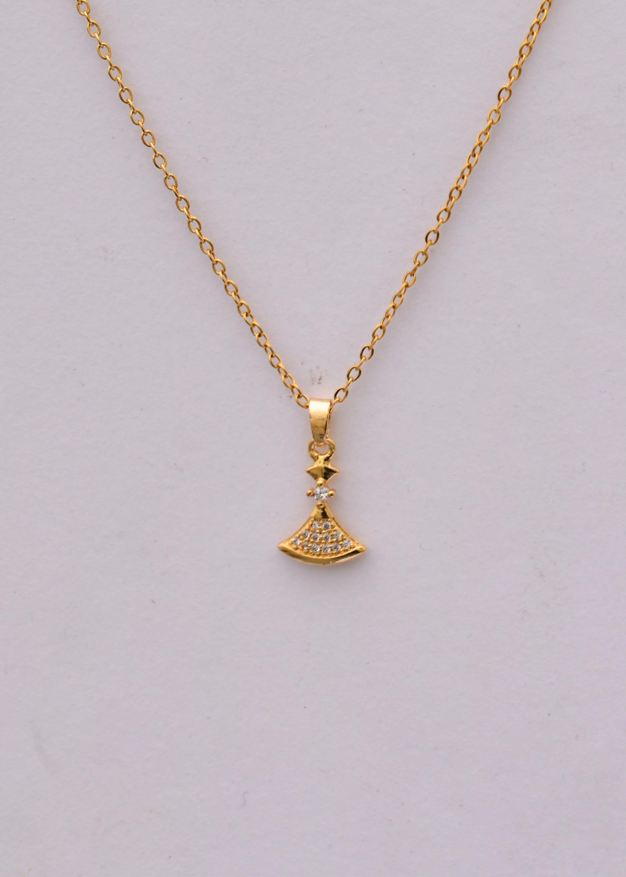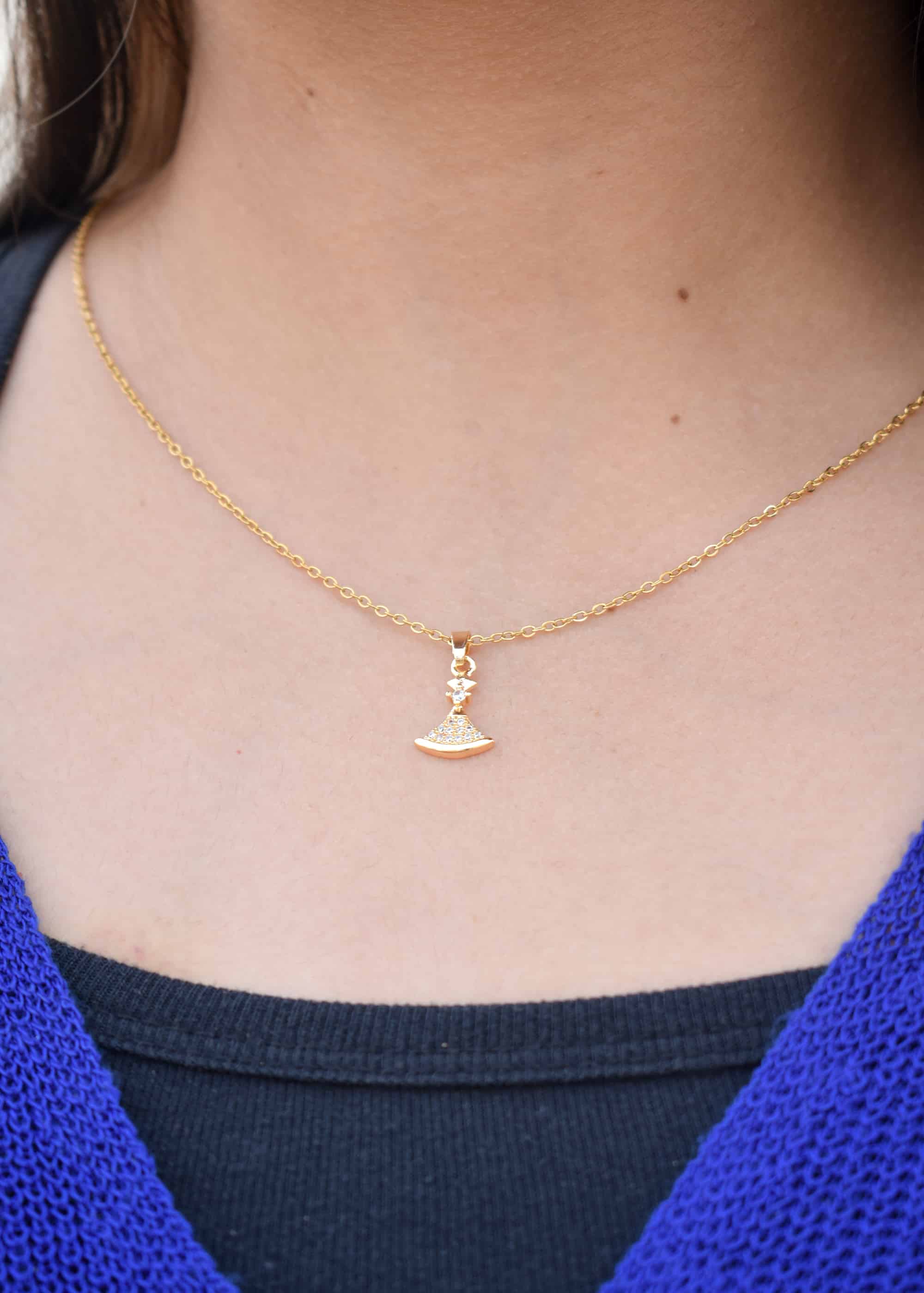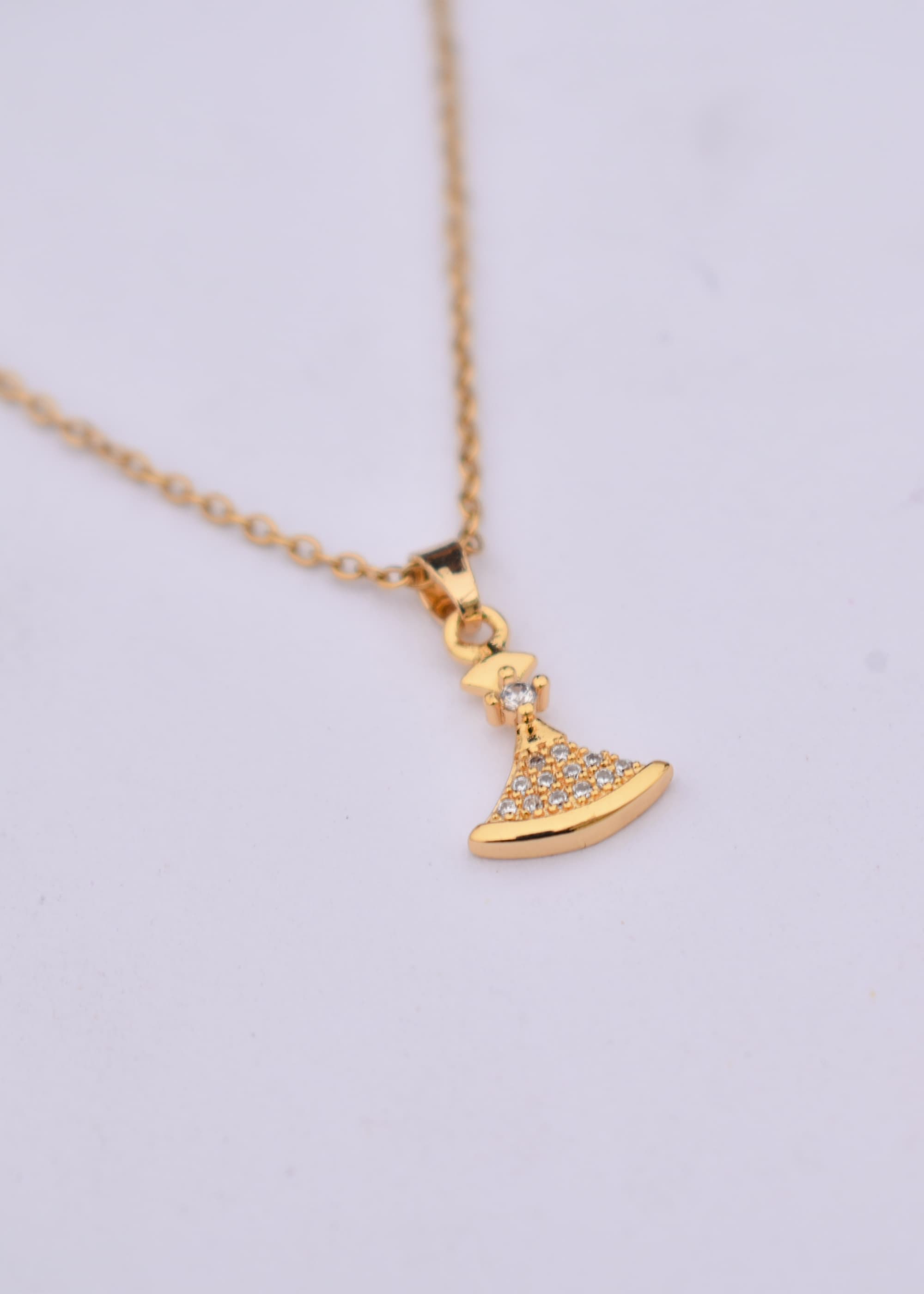 Picture yourself wearing this necklace – it features a dazzling gold-plated pendant hanging gracefully from a high-quality gold-plated chain, adorned with sparkling clear circular gemstones. It’s the kind of piece that instantly elevates any look!
