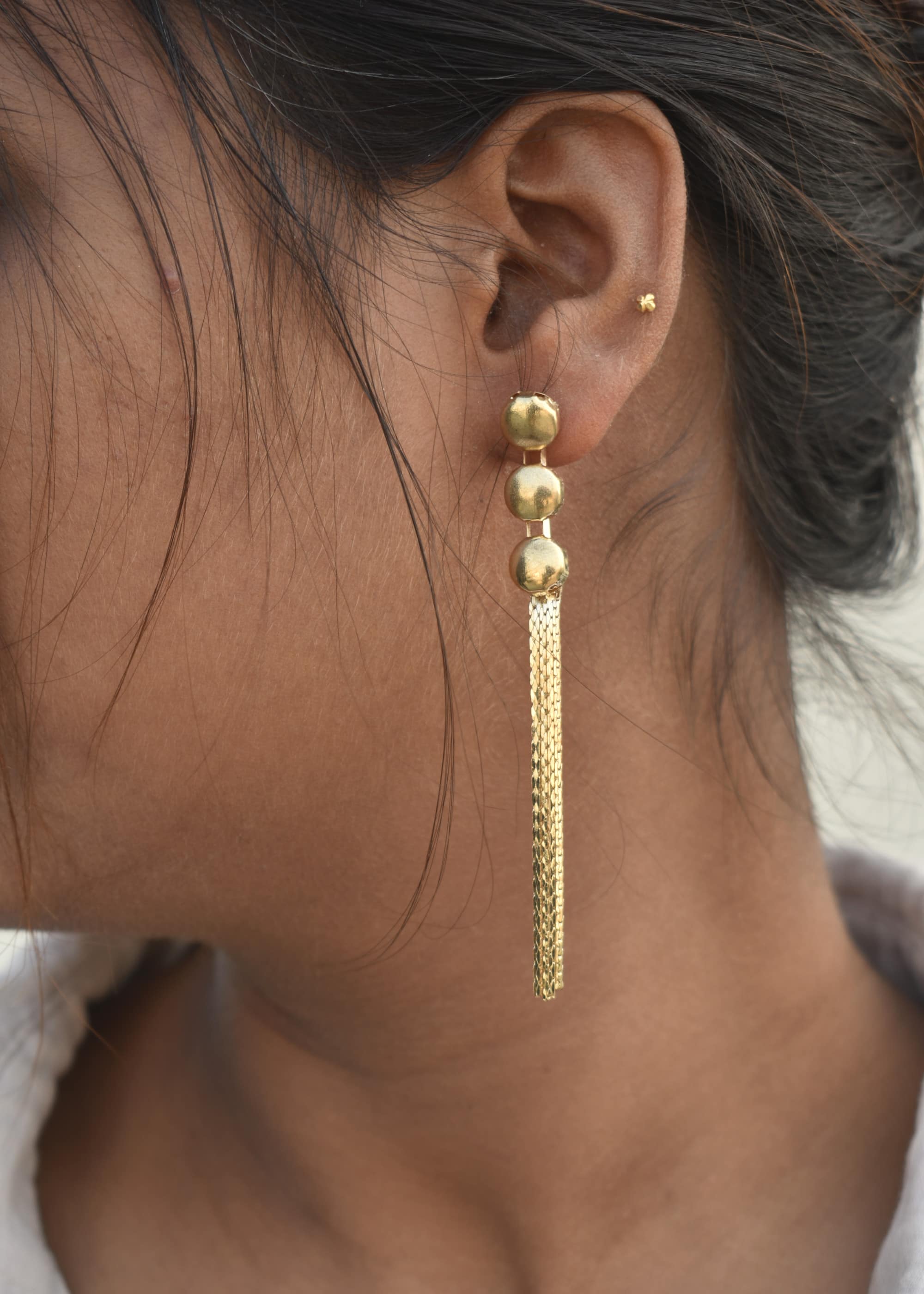 Elevate your look with these Gold-Toned Contemporary Long Dangle Earrings and embrace the fashion-forward charm that Delhi is renowned for. Order now and let these earrings be the perfect finishing touch to your ensemble, making every moment unforgettable.