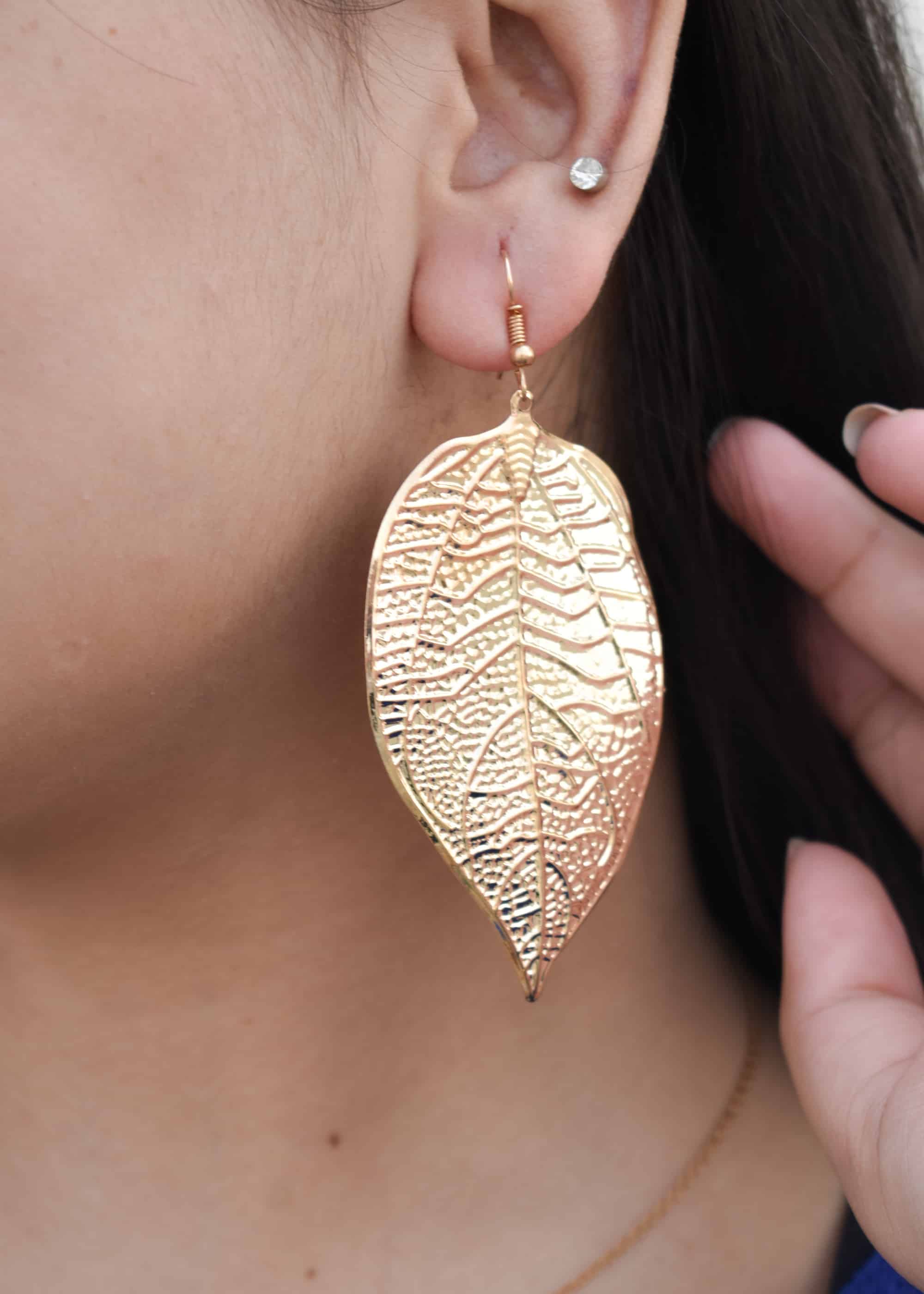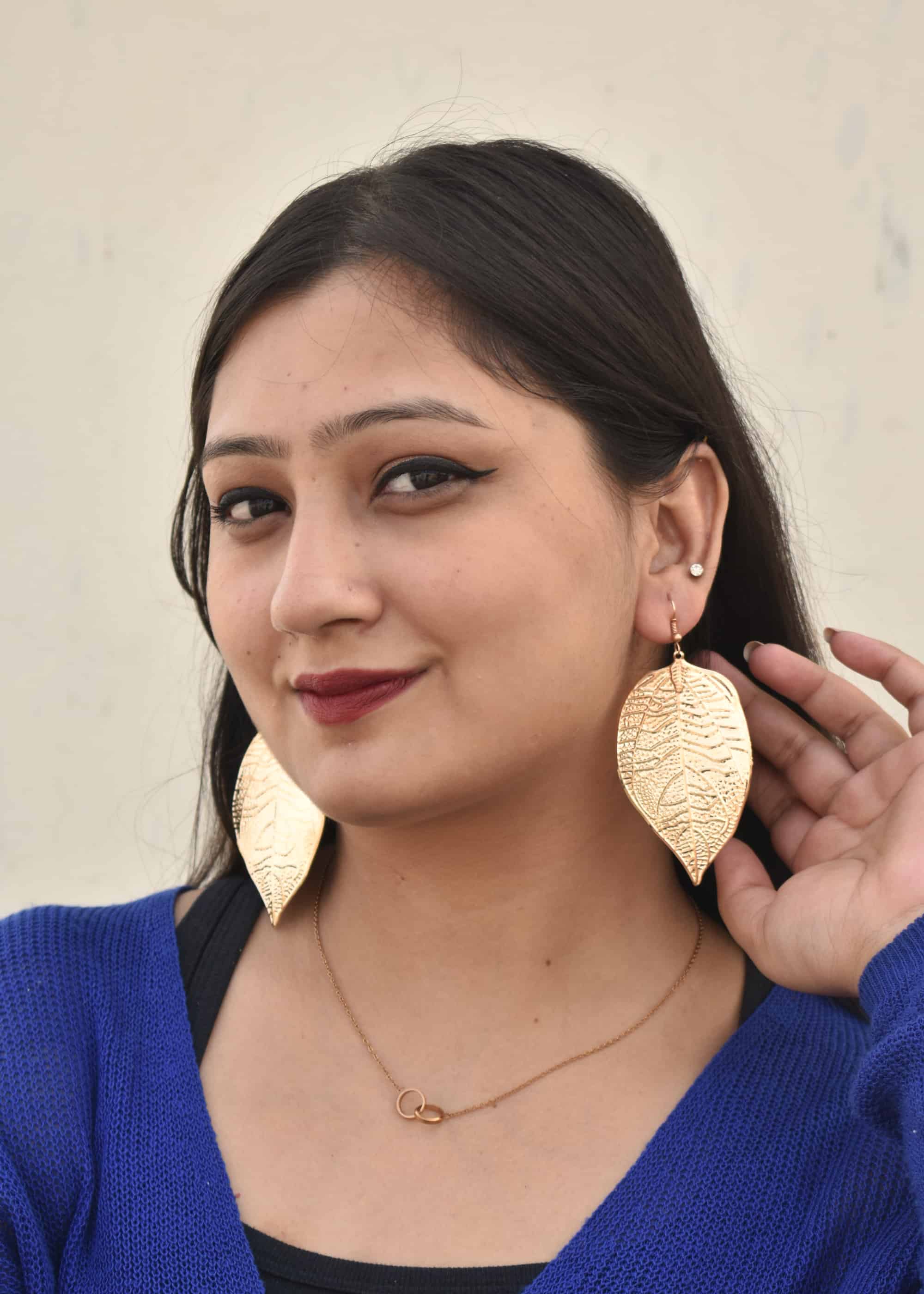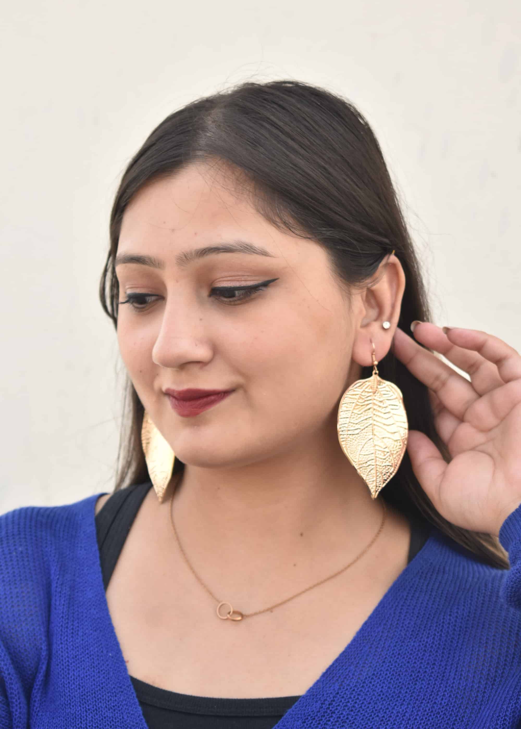 Introducing our stunning Gold Tones Leaf Shaped Earrings! These beauties are crafted from thick metal foil and have a gorgeous antique golden look. Straight from the heart of fashion in India – Delhi, these earrings embody the modern jewellery scene that’s loved all over the country.