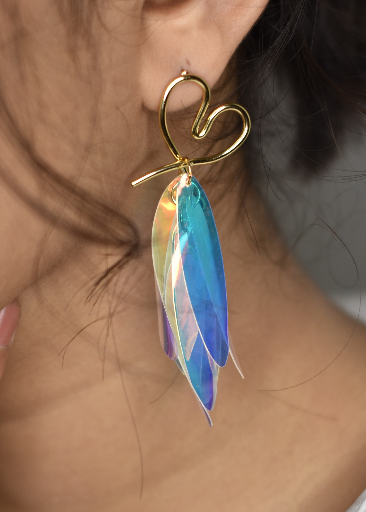 - Vibrant Feathers, Captivating Shine: These earrings feature multicolored feathers that shimmer and catch the light, creating a captivating and dynamic effect.