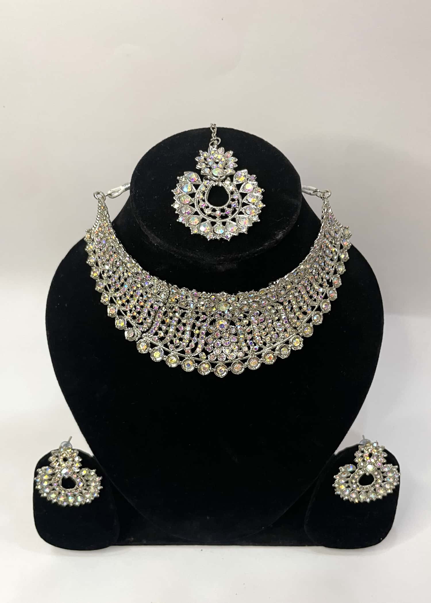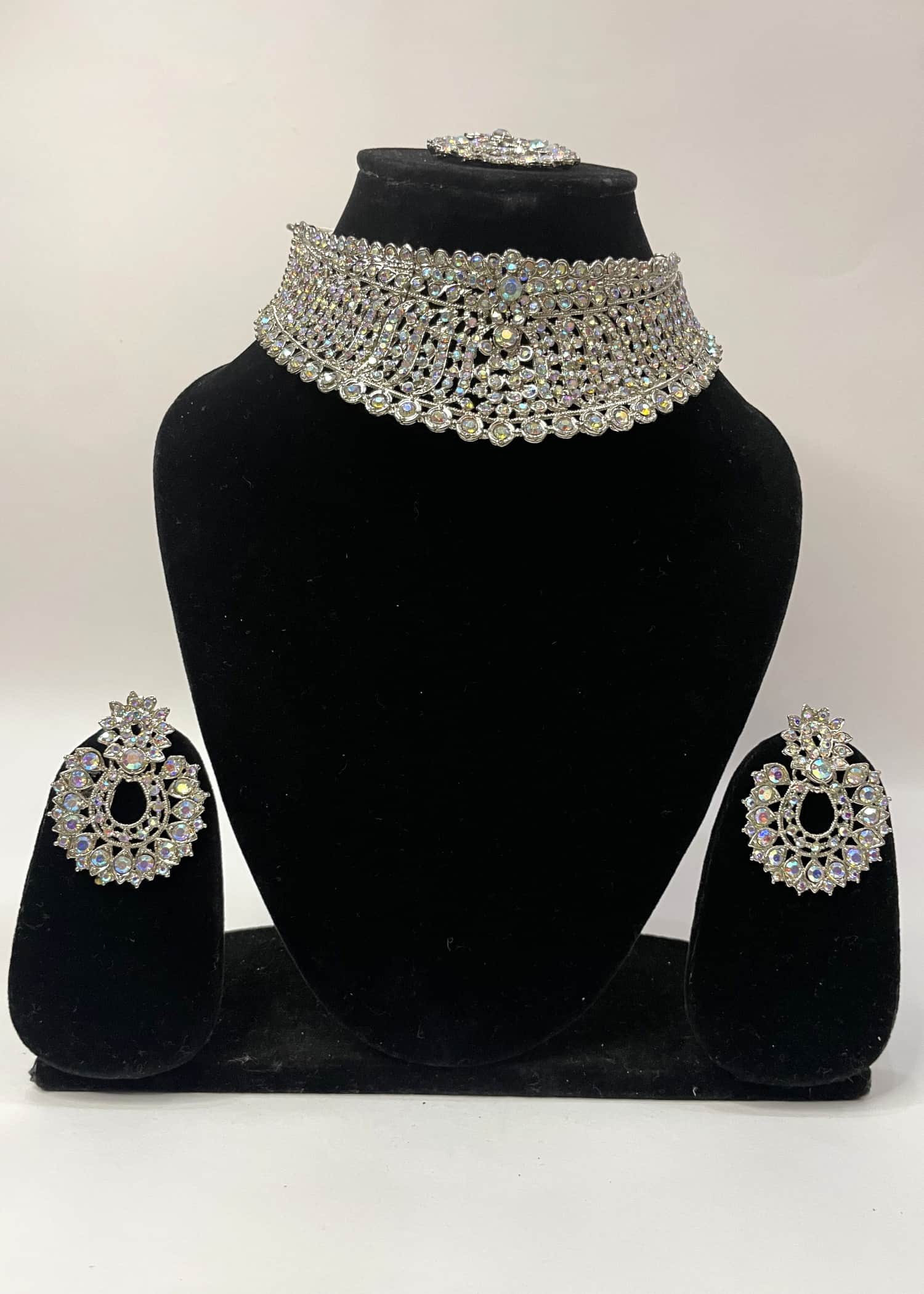 1 choker necklace, 1 maang tikka and a pair of ear rings