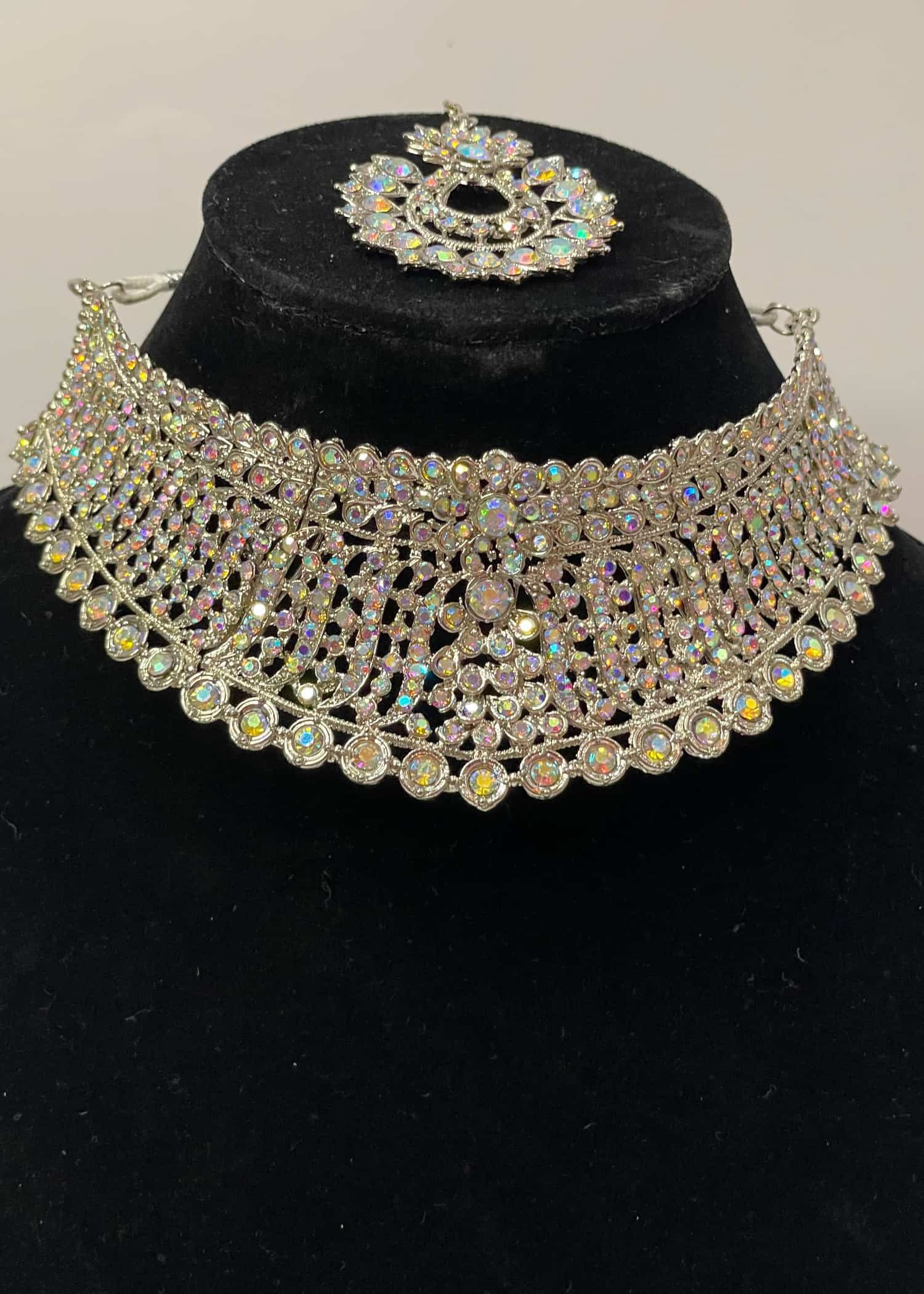 - Includes a choker necklace, maang tikka, and earrings