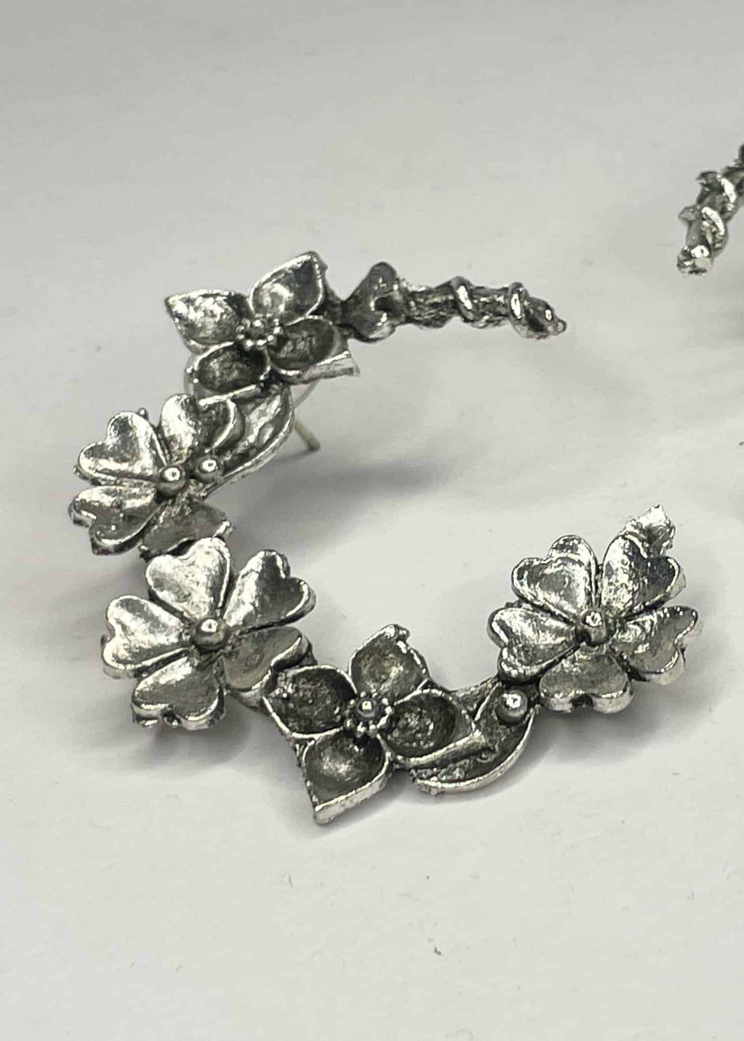 Not only is this earring stylish and versatile, but it is also unique, making it a one-of-a-kind accessory. The use of oxidized metal and the intricate metal crafted flower decoration sets this earring apart from the rest. Whether you’re looking for a gift for a loved one or just want to treat yourself to a new piece of jewellery, this oxidized metal earring is an excellent choice. It is sure to become a cherished addition to any jewellery collection.