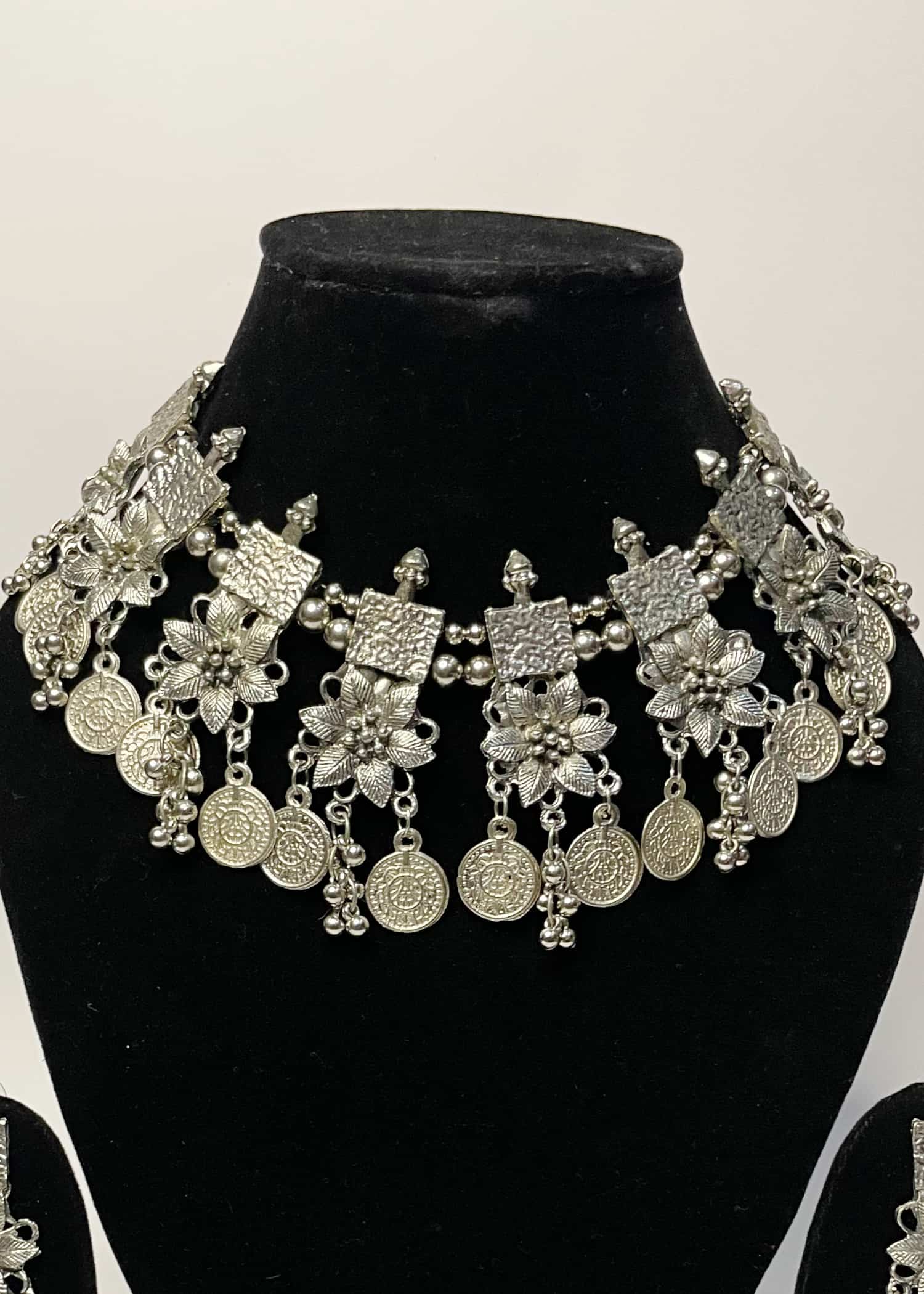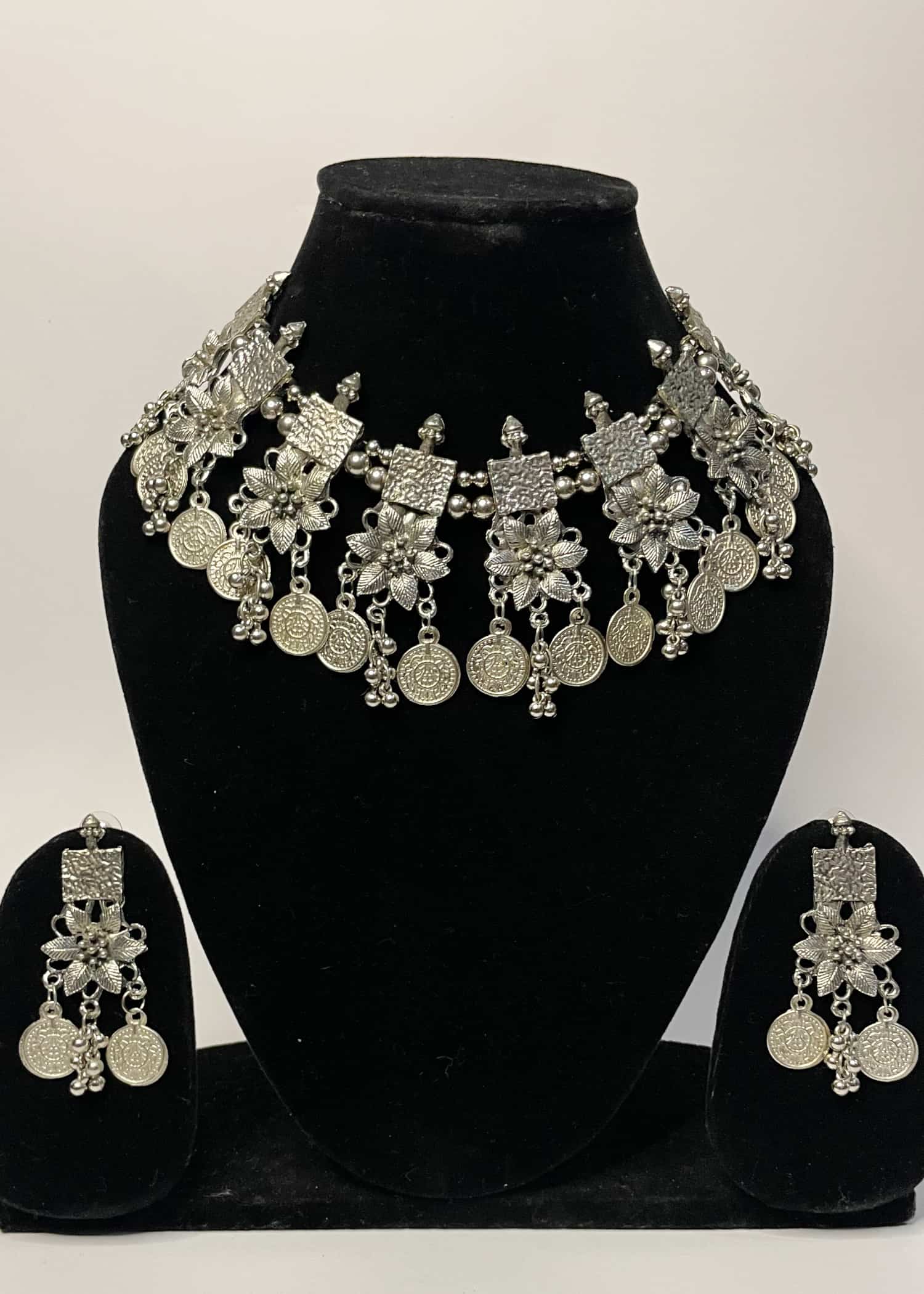 • Oxidized jewellery set including a necklace and a pair of earrings