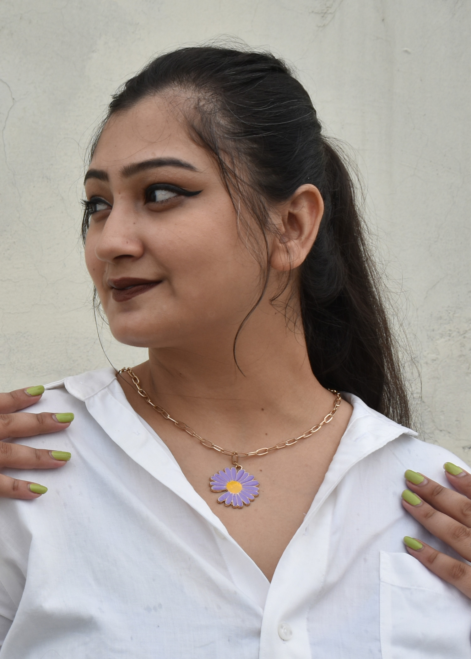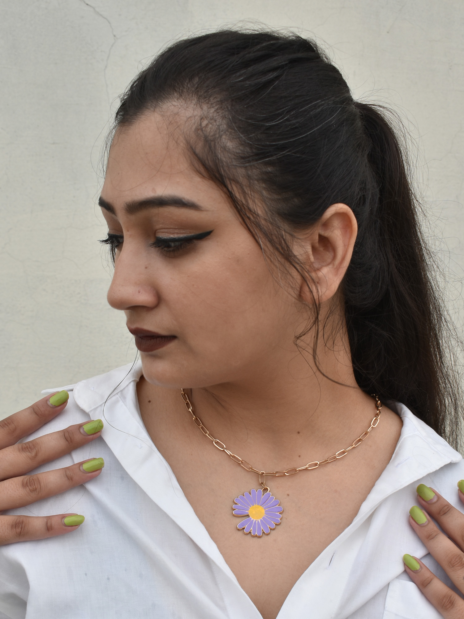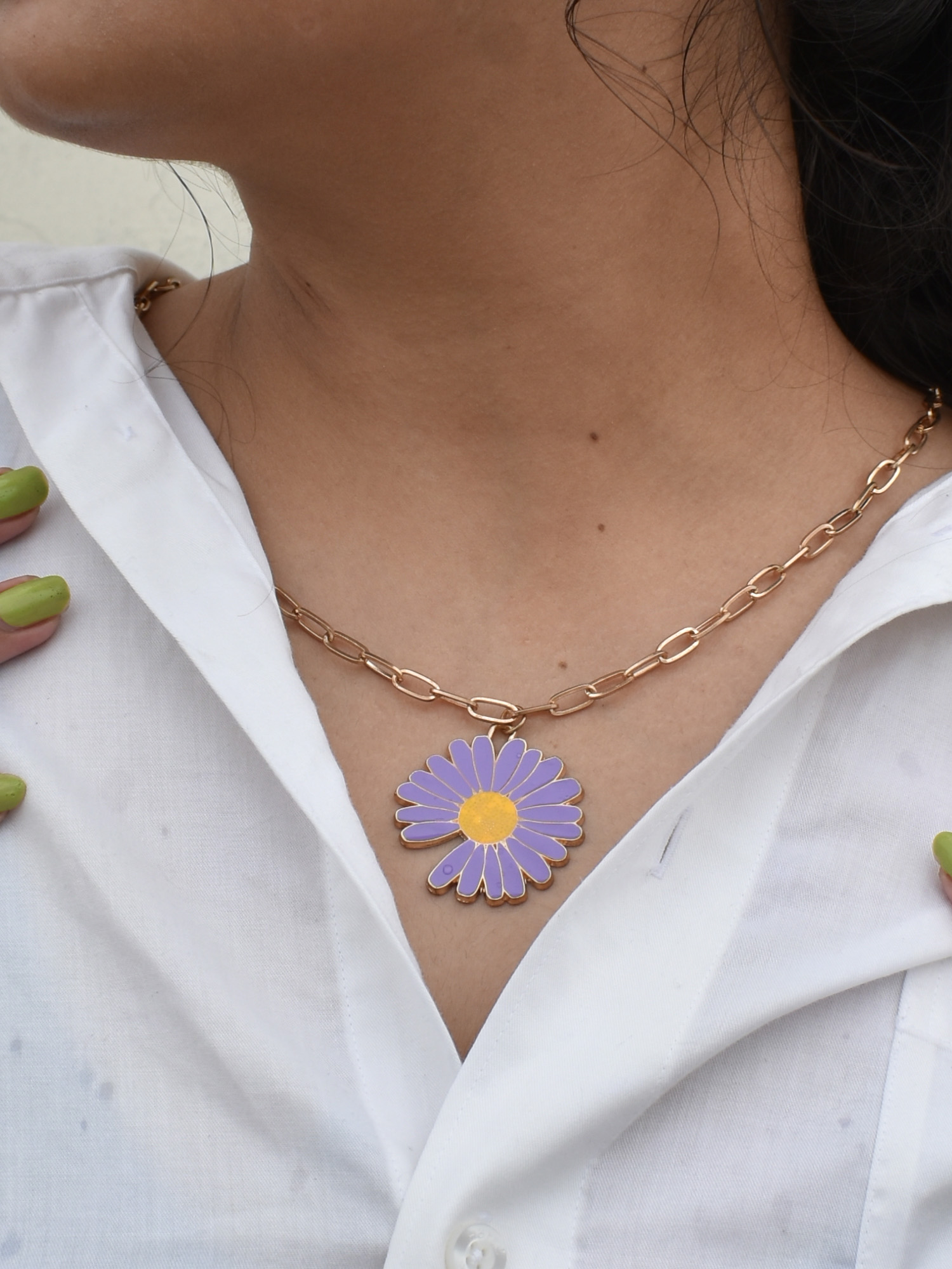 - Introducing our enchanting Purple Flower Necklace, a whimsical and captivating accessory celebrating the beauty of blooming flowers and adding elegance to your neckline.
