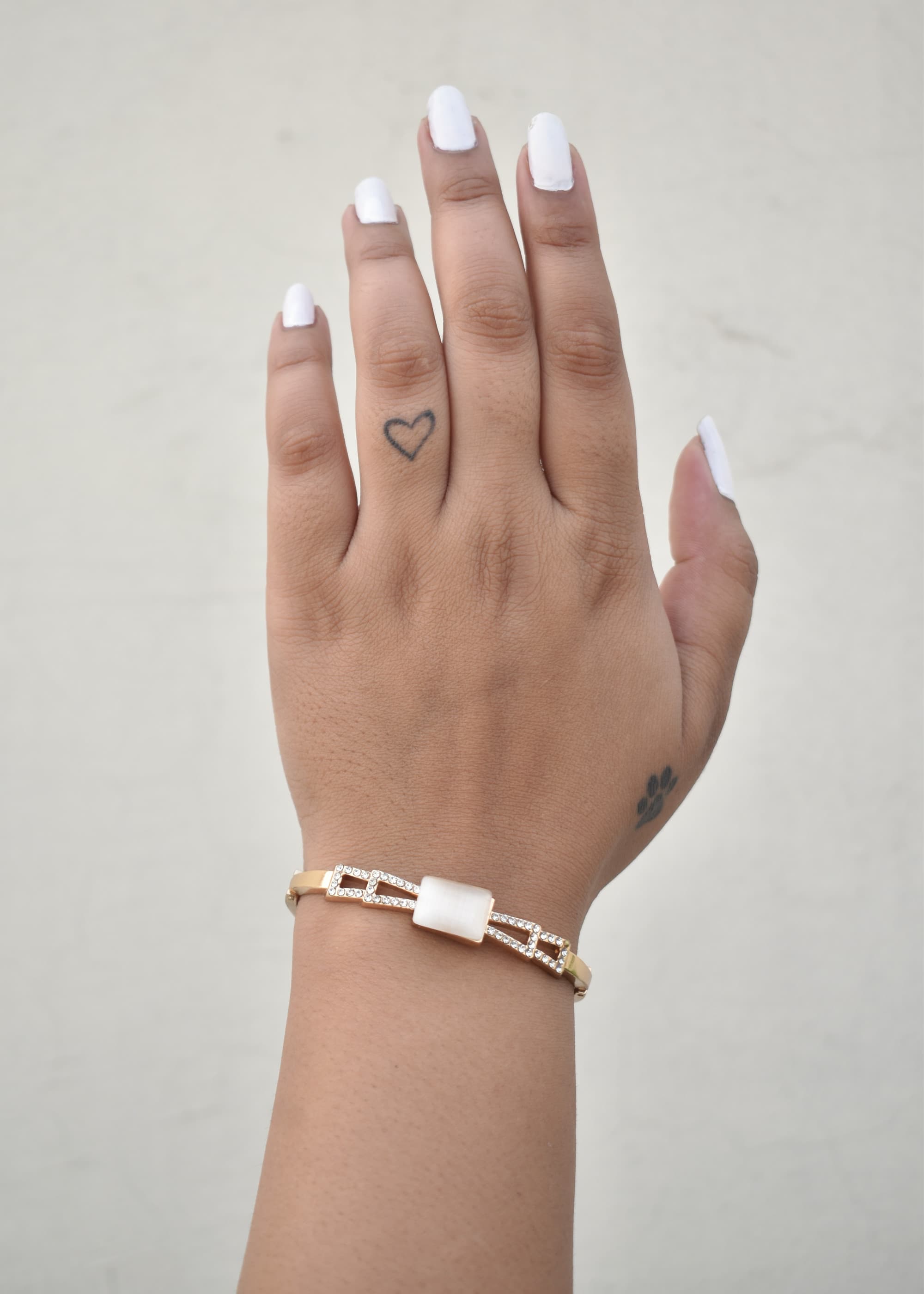- Imagine a beautiful bracelet with a shiny white center and sparkling wings – that’s our design!